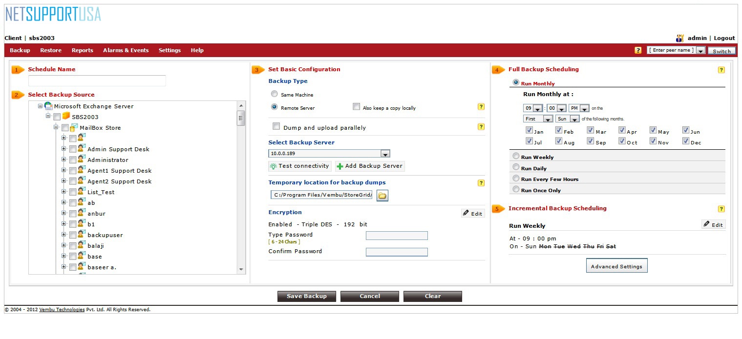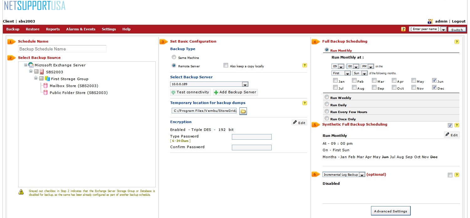 - Schedule full and incremetnal exchange backups using easy-to-use management console